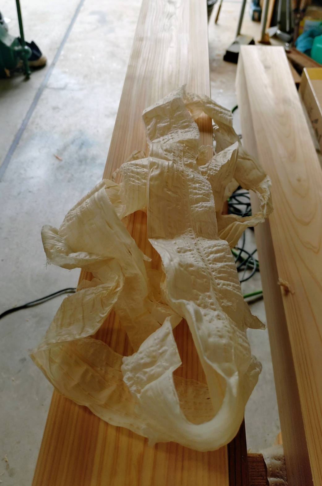 この薄いカンナ屑に、職人技詰まっていますね!